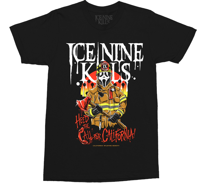 Ice Nine Kills have raised over $100,000 and counting for victims for the California Wildfires with their exclusive “Heed The Call For California” benefit shirt, 100% of the proceeds from which are going to the California Fire Foundation Wildfire and Disaster Relief Fund.